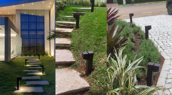 – Destaque: A luz direcionada do balizador realça detalhes arquitetônicos, plantas e caminhos, proporcionando uma atmosfera acolhedora e elegante ao seu espaço exterior